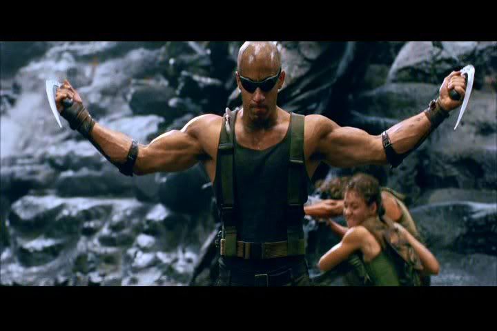They're either made of steel or he's wearing a cup. Nothing can bring Riddick down!